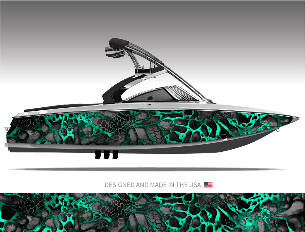 Chameleon XD2 Black and Aqua Camo Boat Wrap Kit