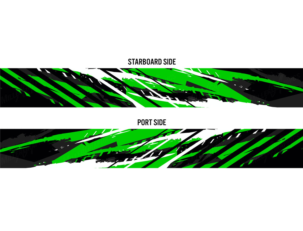 Each size option includes two pieces to cover each side of the boat. All graphics are non-repeat, high resolution images. Each kit is printed on industry-leading 3M Premium Cast Vinyl. 3M Boat Wrap Vinyl has Air Release technology to allow for a smooth and bubble-free installation. Vinyl can be heated and stretched to conform to curves and indentations. All kits are laminated with 3M Cast Laminate to protect graphics from weather conditions and guard against UV fading. Each Boat Wrap kit is available in a gloss or matte finish.