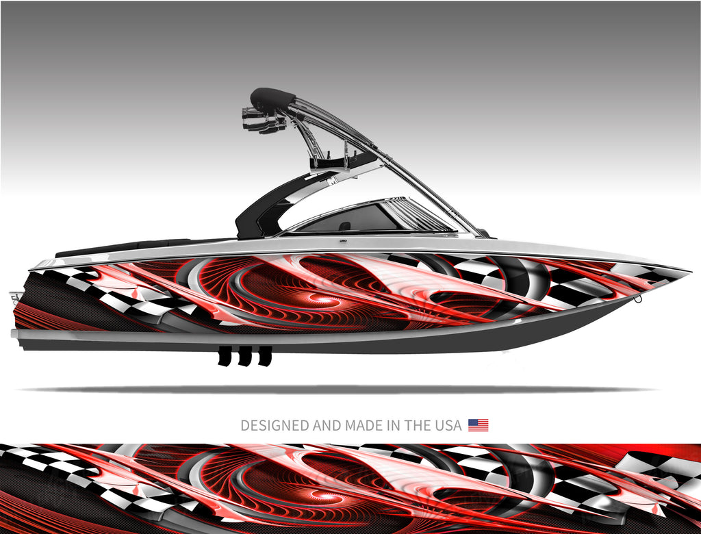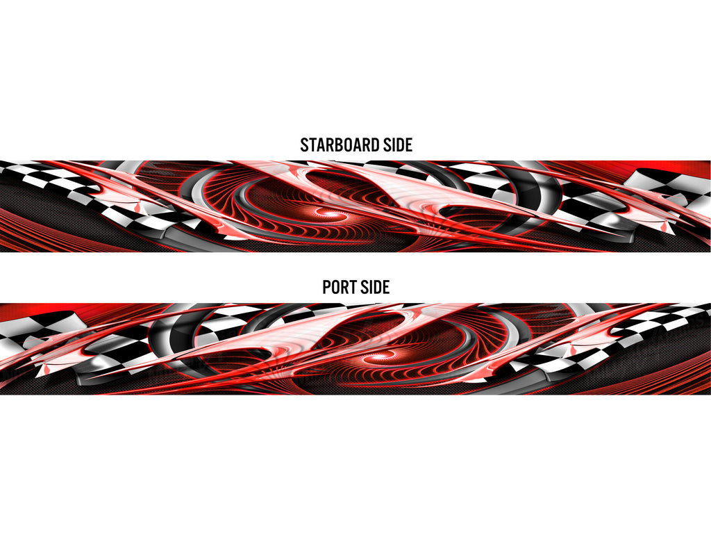 Overdrive (Red) Abstract Checkered Flag Vinyl Boat Wrap Kit
